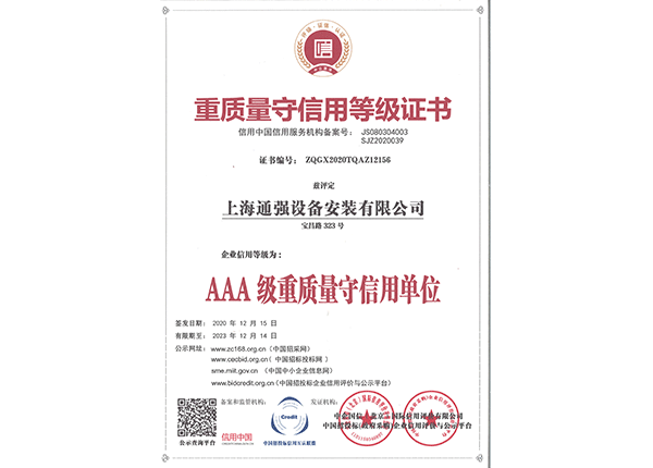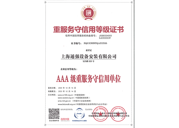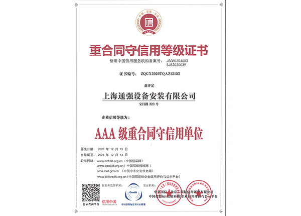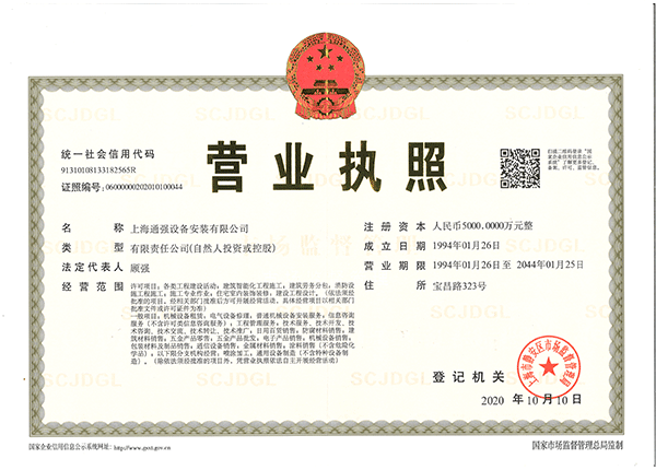 上海通強設備安裝有限公司注冊資金2000萬元,資產總量為100000萬元的專業(yè)設備安裝公司,公司專業(yè)從事工業(yè)與民用建筑的設備安裝、非標設備的制作、鋼結構制作安裝、中央空調系統(tǒng)的安裝,水電及管道的安裝。經(jīng)過20多年艱苦創(chuàng)業(yè)現(xiàn)已成為一個具有國家二級安裝資質,獲得上海市“重合同,守信用”的施工單位。
